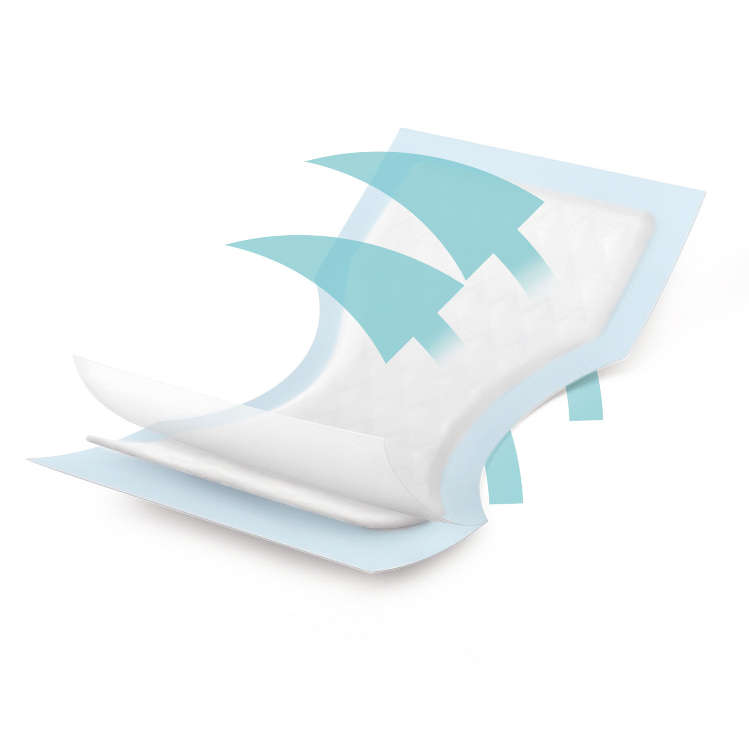 Szeroki pasek samoprzylepny utrzymuje podkład na właściwym miejscu. Wyprofilowany kształt zapewnia komfort podczas noszenia i ochronę przed zabrudzeniem. Cienka struktura zapewnia dyskrecję noszenia. Wkład żelujący szybko pochłania i zatrzymuje wilgoć wewnątrz podkładu.
