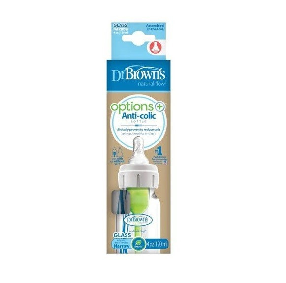 Najnowsza butelka szklana z wąską szyjką Dr Brown′s Options+ ze smoczkiem poziom 1.