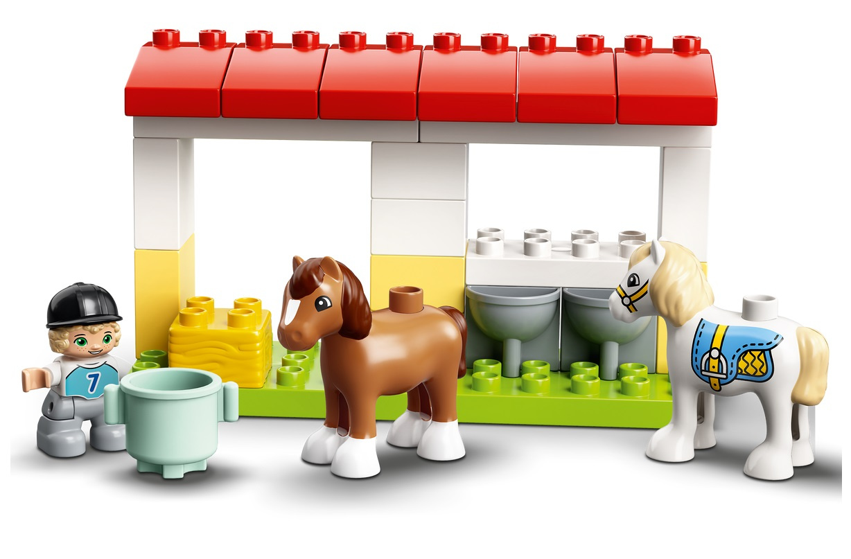 - W zestawie LEGO® DUPLO® Town Stadnina i kucyki (10951) jest wszystko, co małym miłośnikom zwierząt może być potrzebne do kreatywnej, pouczającej zabawy w opiekę nad dwoma uroczymi kucykami.