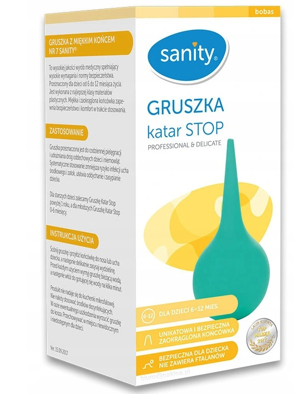 • Gruszka to wysokiej jakości wyrób medyczny spełniający wysokie wymagania i normy bezpieczeństwa, przeznaczony dla dzieci w wieku od pół roku do roku.