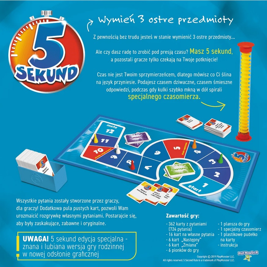 - 5 sekund Edycja specjalna, to kolejna odsłona kultowej gry towarzyskiej, dla rodziny i przyjaciół.
