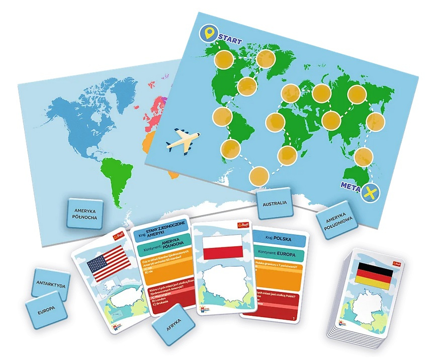 Poprzez zabawę dziecko pozna nowe kraje i kontynenty oraz utrwali zdobytą wiedzę.
