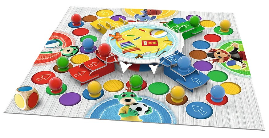 Rzucajcie kolorową kostką, przesuwajcie piłeczki i wygrywajcie! Udanej zabawy życzy Rodzina Treflików. Dzięki kolorowej kostce niewymagana jest umiejętność liczenia.