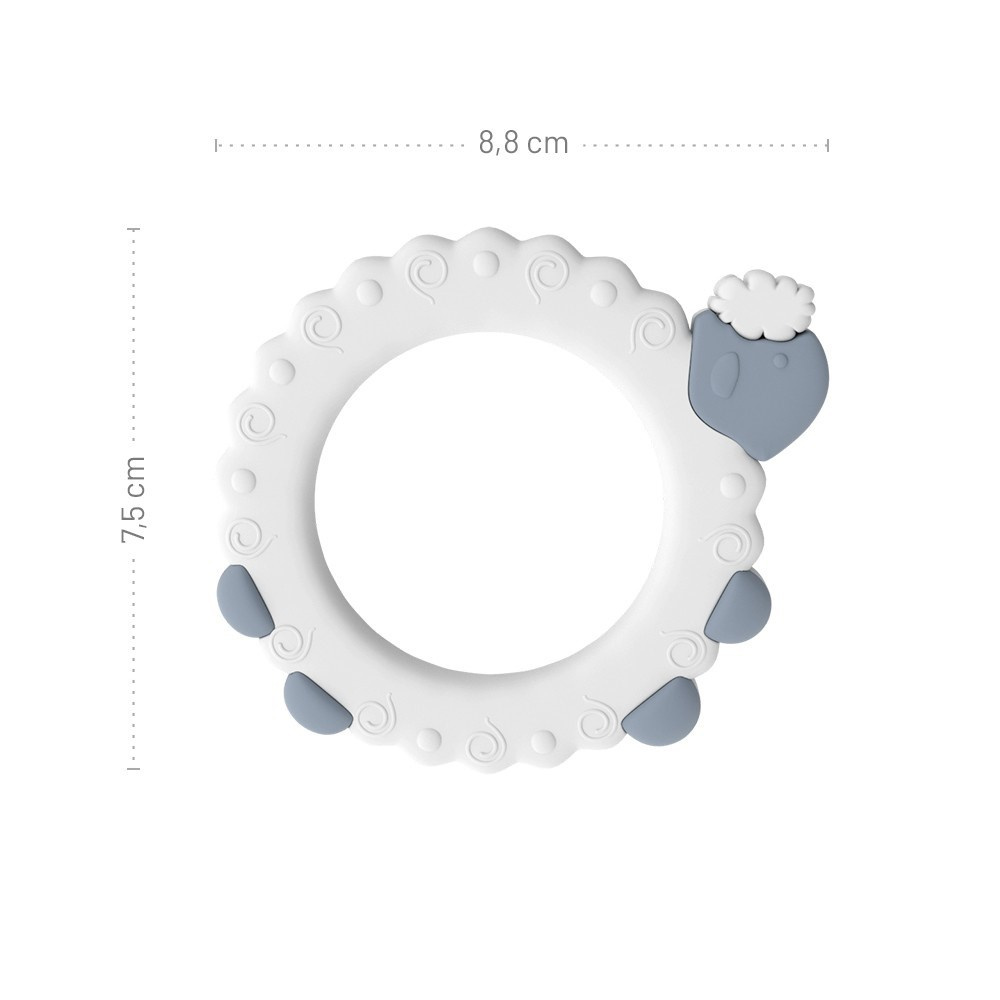 - Wykonany z bezpiecznego silikonu gryzak w kształcie owieczki będzie wspaniałym prezentem dla ząbkującego bobasa.