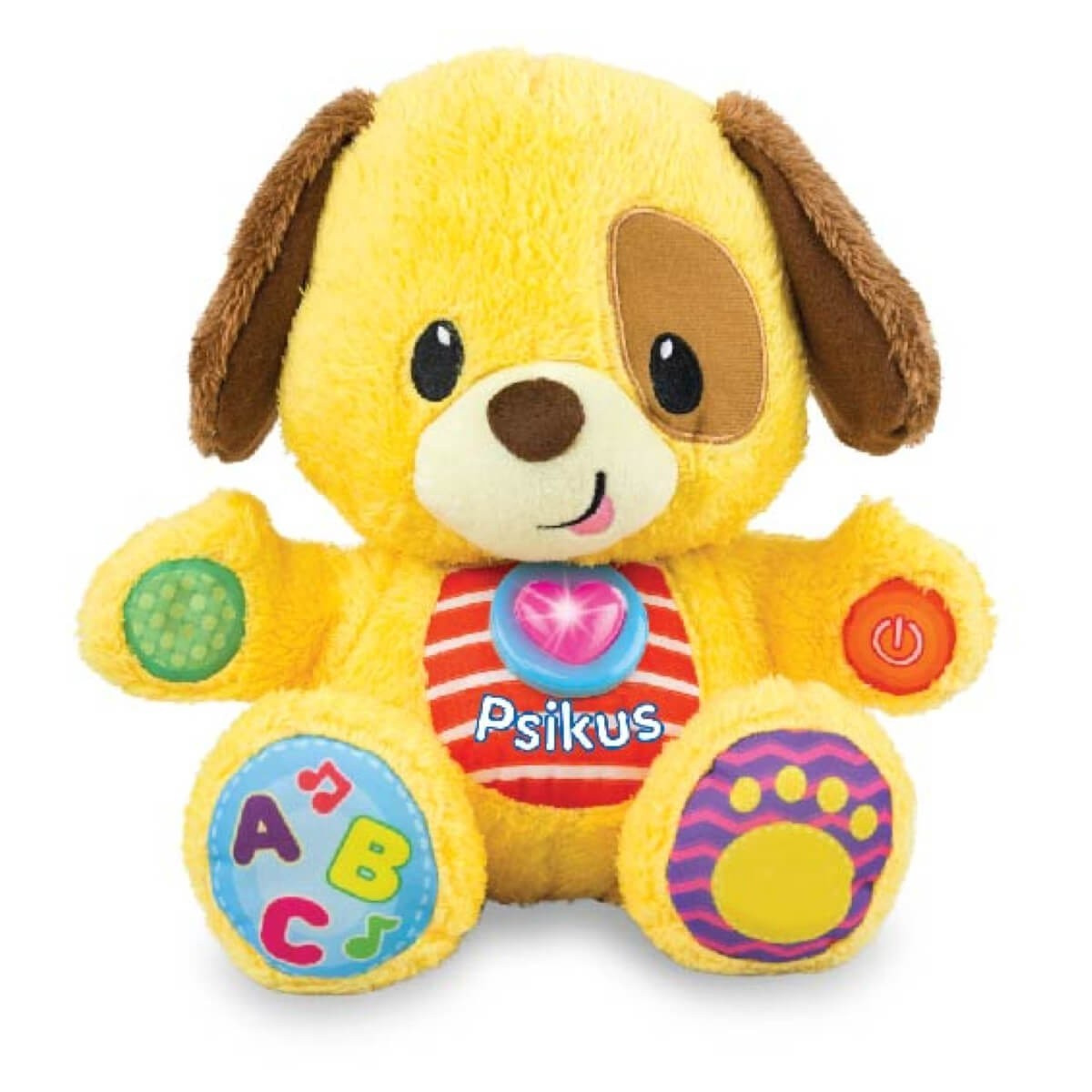 Psikus jest miękki i miły w dotyku. Jego serduszko pulsuje delikatnym światełkiem.