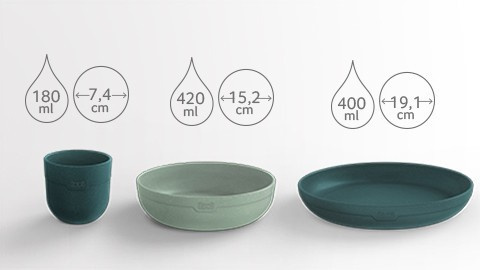 Do produkcji naczyń zastosowane jest 20% mączki drzewnej pochodzącej z recyklingu, dzięki czemu w składzie znajduje się mniej plastiku, a co najważniejsze naczynia te są wolne od melaminy oraz BPA.