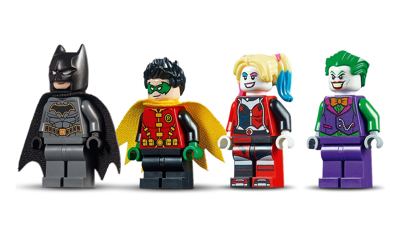 W pudełku dzieci znajdą minifigurki Batmana, Robina™, Jokera i Harley Quinn™, więc zabawa w odgrywanie ról może się zacząć od razu. Zestaw ma tyle funkcji, że zabawa może trwać bez końca, w tym otwierające się i zamykające usta z przodu motocykla Jokera czy silnik Batmobilu, który można wyjąć i zamontować w trójkołowcu.