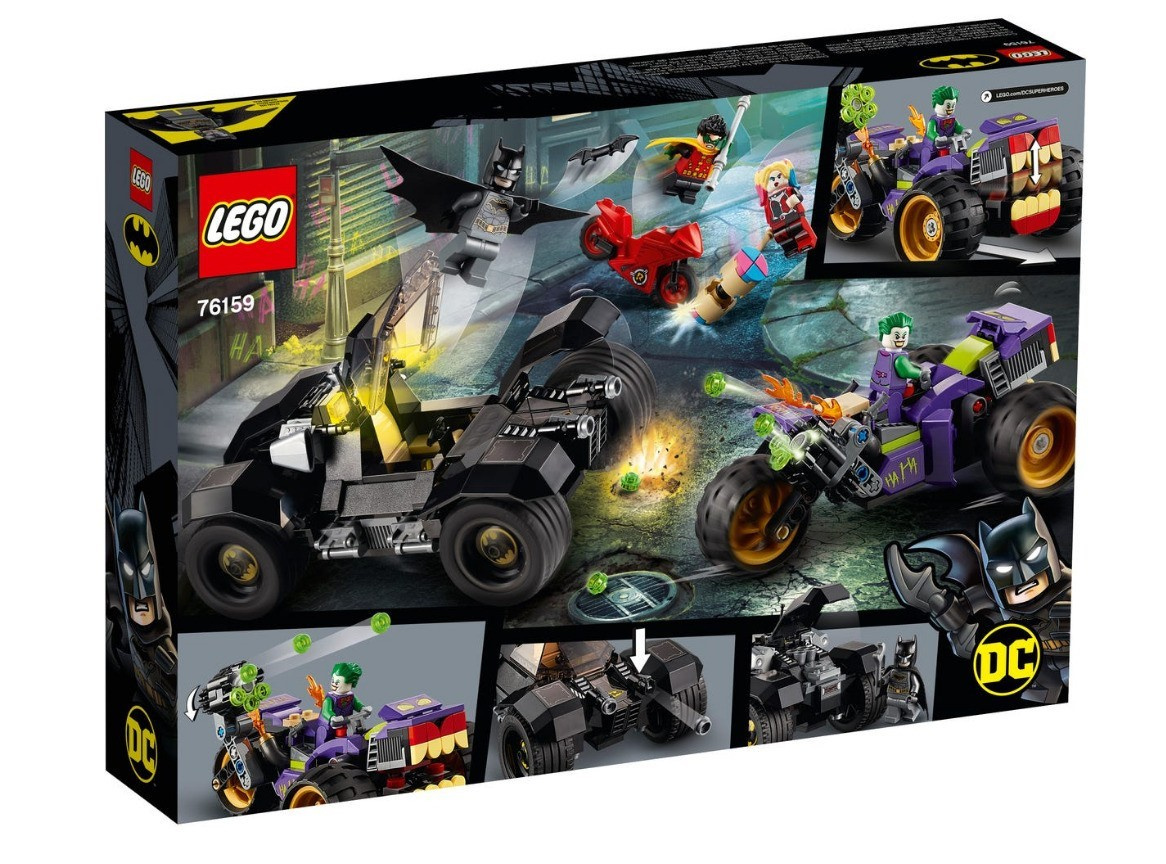 - Zestaw LEGO® DC Batman™ Trójkołowy motocykl Jokera (76159) ucieszy każdego małego fana Batmana i Jokera™.