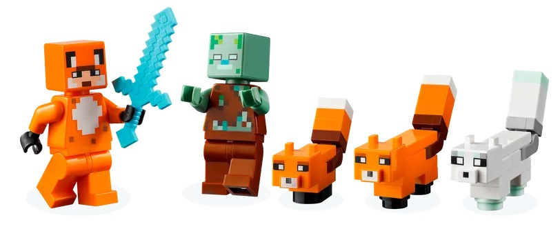 Dzieci mogą wykorzystać swój talent do grania w Minecrafta i skonstruować dom, który wygląda jak śpiący lis. Tył domu jest otwarty, a dach można podnieść, żeby ustawić w środku meble i pobawić się w odgrywanie ról.