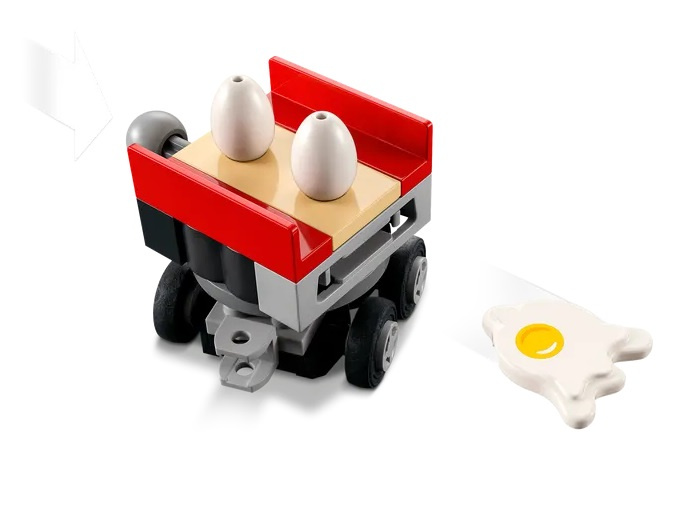 • cechy i funkcje - dzieci mogą strzelać jajkami z przyczepy traktora, uruchomić funkcję ucieczki z aresztu lub przechylić quada, by kierować nim we wszystkie strony