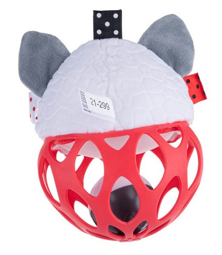 Wszystko po to, aby stymulować zmysły malucha. Czerwona piłka wykonana jest z elastycznego tworzywa i posiada praktyczne otwory, które ułatwiają małym rączkom chwytanie zabawki. Przy potrząsaniu, zabawka wesoło grzechocze.