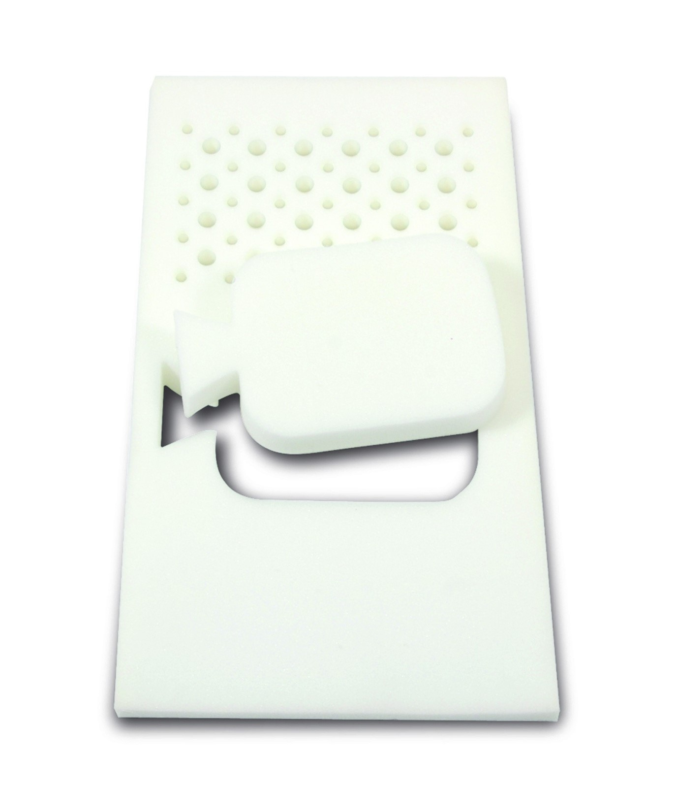 W kształcie klina z otworami wentylacyjnymi, zapobiega zakrztuszeniu się dziecka