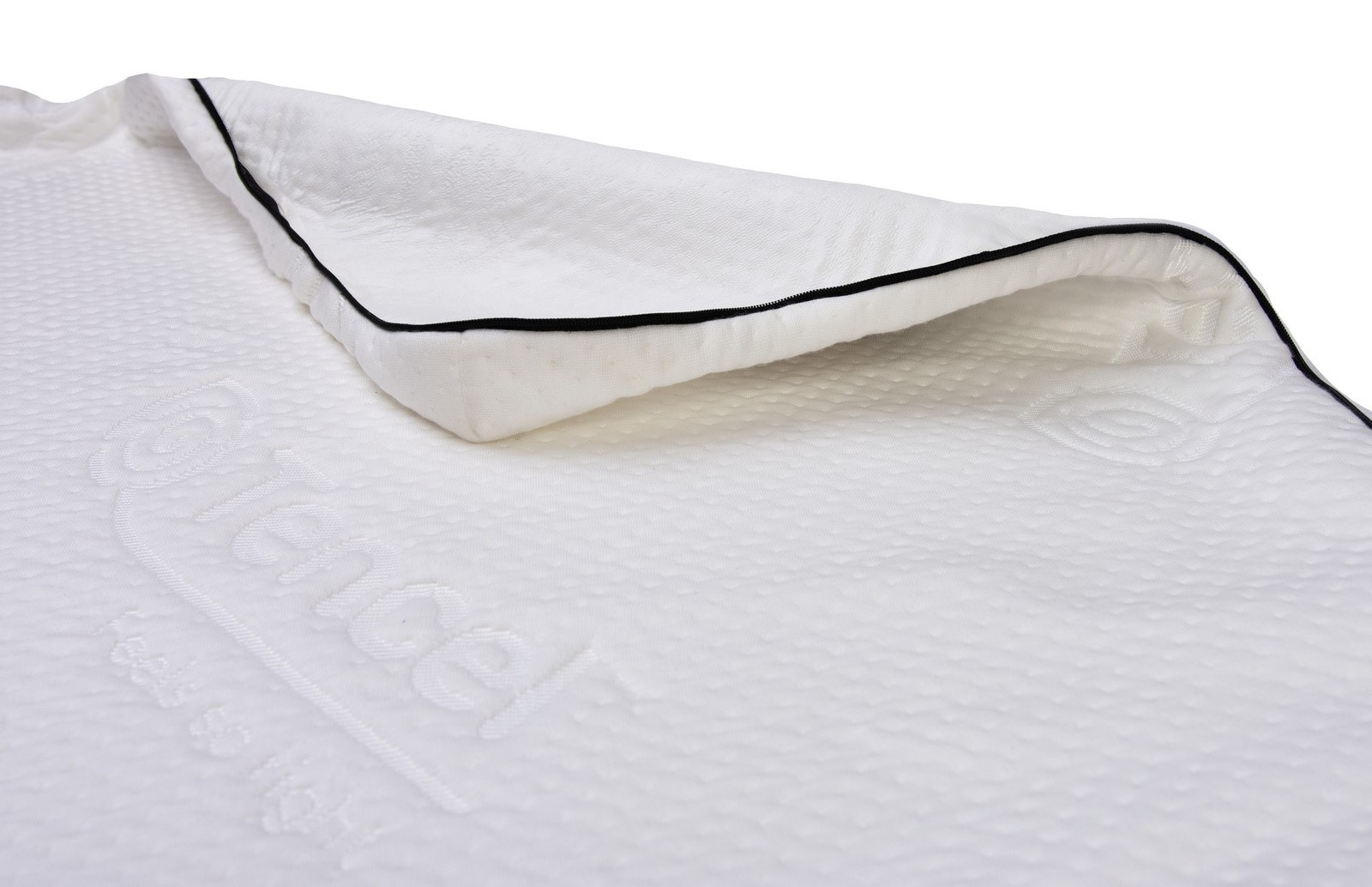 Po obróceniu pokrowca ujrzymy nieprzemakającą warstwę wykonaną z dzianiny żakardowej typu Tencel zapobiegającej podrażnieniom skóry, zintegrowaną z membraną PU, co czyni ją nieprzemakalną.