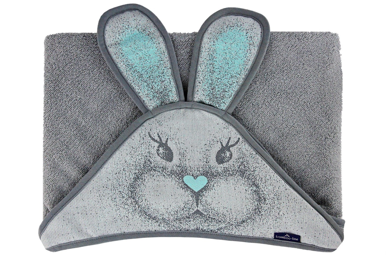 Texpol Bambusowe Okrycie kąpielowe 85x85 cm Króliczek szare,mięta