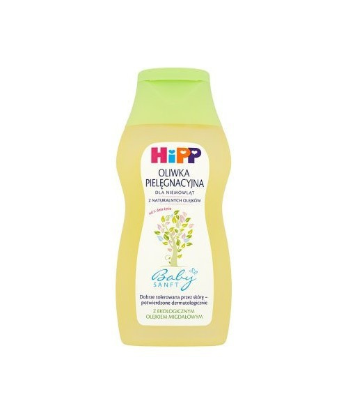 - Opakowanie 200 ml. Oliwka pielęgnacyjna HiPP Babysanft zawiera tylko naturalne olejki - w tym ekologiczny olejek migdałowy, dzięki czemu można ją stosować już od 1. dnia życia.