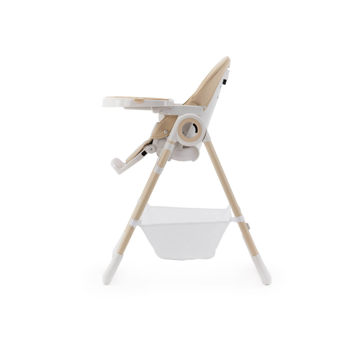 Składanie YUNO jest bardzo proste – zrobisz to jednym ruchem! Jeśli chcesz złożyć krzesełko, wtedy tackę możesz zdjąć i zaczepić z tyłu krzesełka na specjalnych uchwytach lub uchylić ją i złożyć krzesełko wraz z tacką.