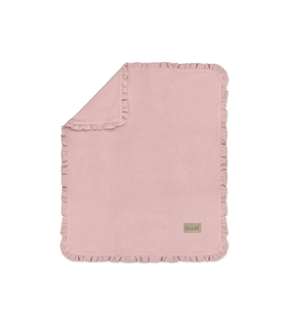Albero Mio Kocyk bawełniany z falbanką Róż
