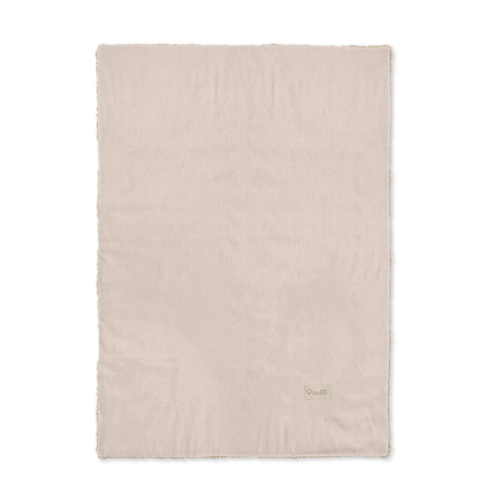 Kocyk z jednej strony wykonany jest z miękkiego i delikatnego weluru bawełnianego, który jest przyjazny dla wrażliwej skóry dziecka, a z drugiej strony zastosowaliśmy wyjątkowo puszystą dzianinę teddy, oferującą przyjemne otulenie i ciepło.