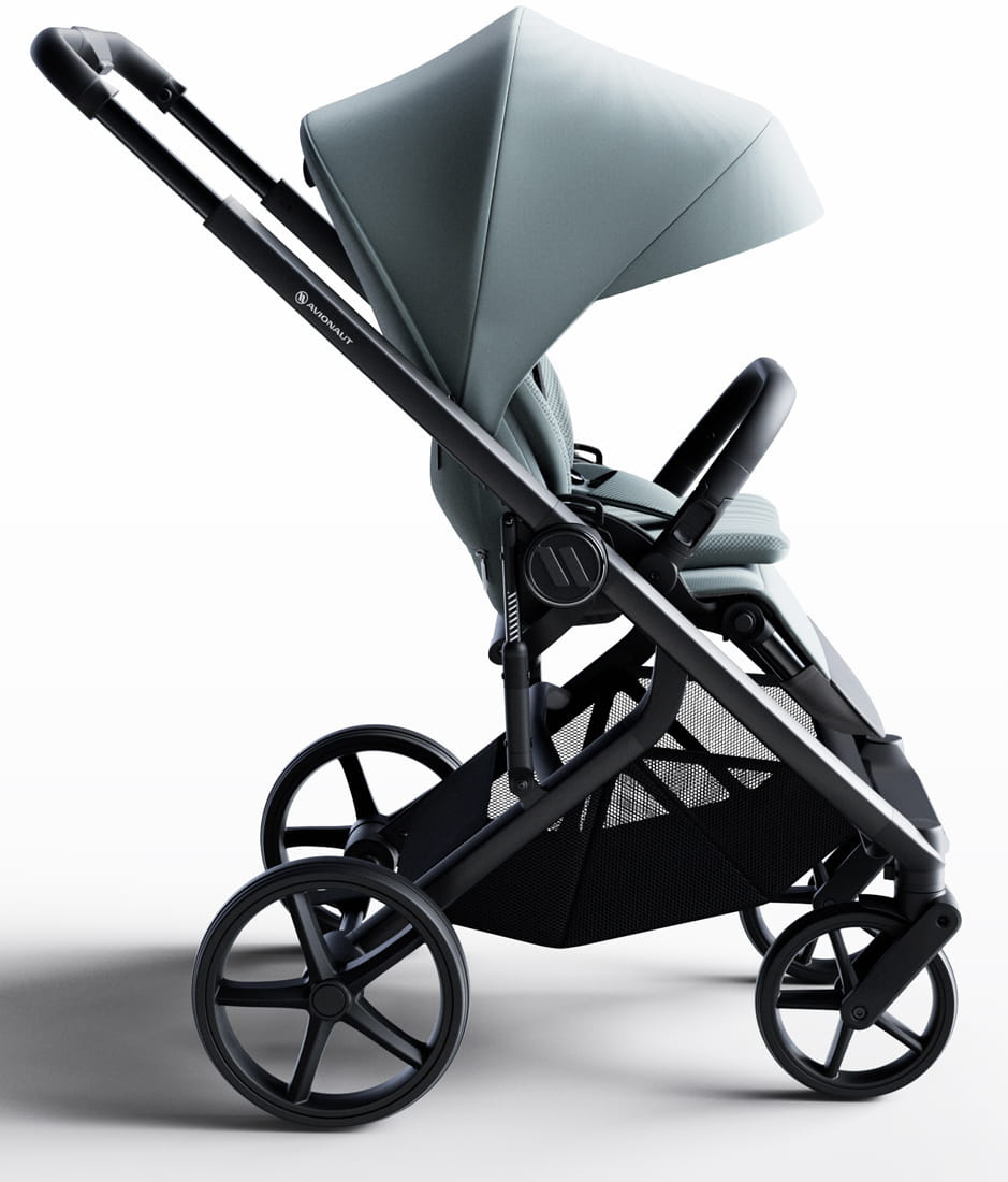 Gondola zapewnia idealne warunki dla noworodka, a spacerówka jest w pełni dostosowana do potrzeb starszego dziecka, dzięki regulowanemu oparciu oraz innowacyjnemu systemowi amortyzacji.