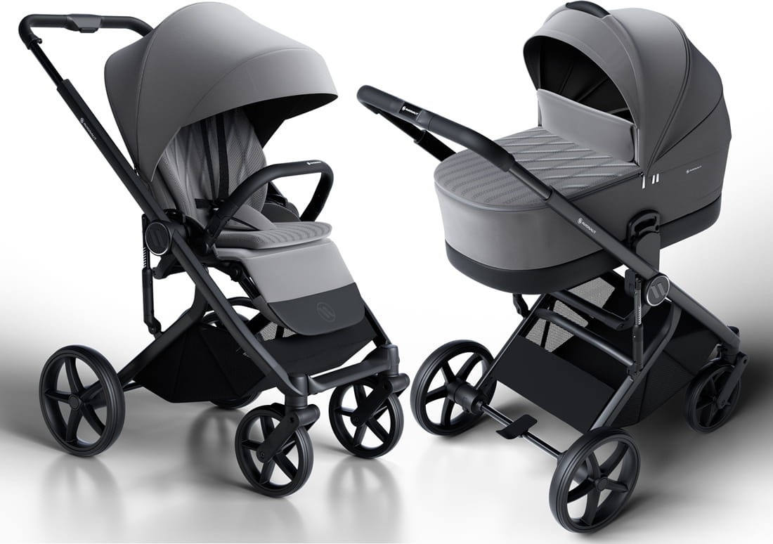 Gondola zapewnia idealne warunki dla noworodka, a spacerówka jest w pełni dostosowana do potrzeb starszego dziecka, dzięki regulowanemu oparciu oraz innowacyjnemu systemowi amortyzacji.