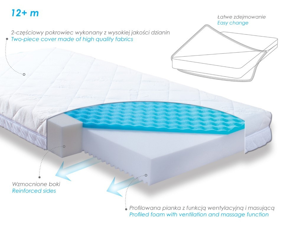 • trój-warstwowa, puszysta, pikowana dzianina żakardowa z logo BabyMatex® oraz dzianina frotte o właściwościach chłonnych