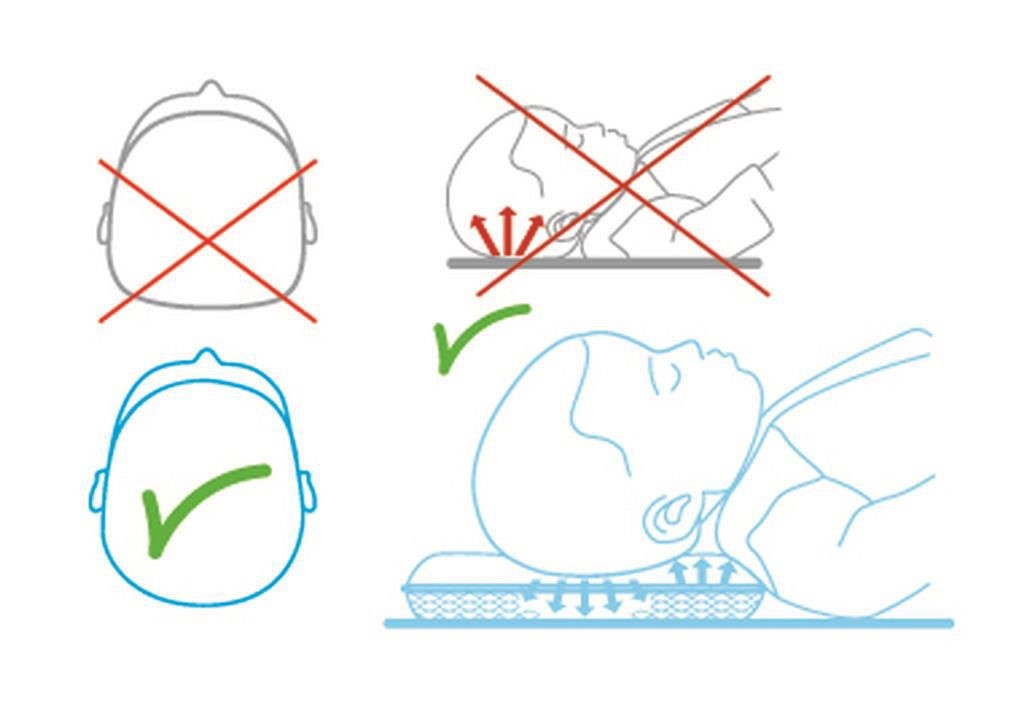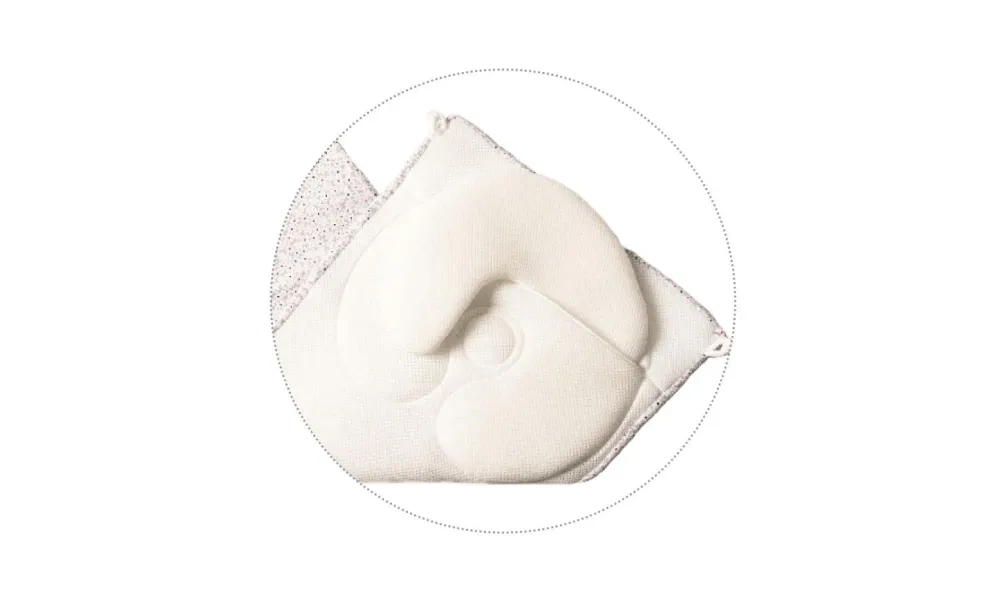 Wyprofilowana poduszka w kształcie litery „C” utrzymuje odpowiednią pozycję główki podczas leżenia.