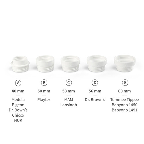 Dzięki 5 dołączonym adapterom podgrzewacz pasuje do większości marek butelek dostępnych na rynku.