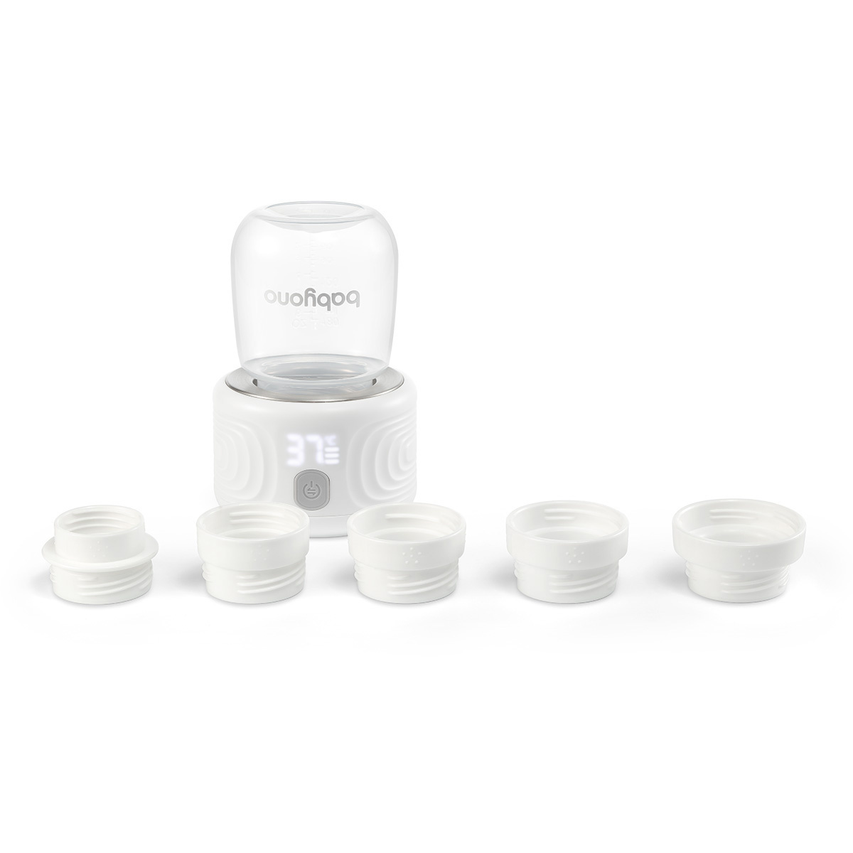 Podgrzewacz oferuje 4 precyzyjne zakresy temperatur: 37°C, 40°C, 45°C i 50°C. W zestawie z podgrzewaczem jest butelka o pojemności 180 ml.