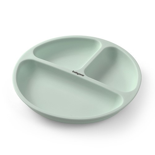 Ergonomiczny kształt ułatwia samodzielne nabieranie pokarmu.Trzy praktyczne przegródki zachęcają do zróżnicowanego jedzenia. Wykonany z wysokiej jakości silikonu, talerzyk jest bezpieczny dla zdrowia i łatwy w czyszczeniu. Można go myć w zmywarce i podgrzewać w mikrofalówce.