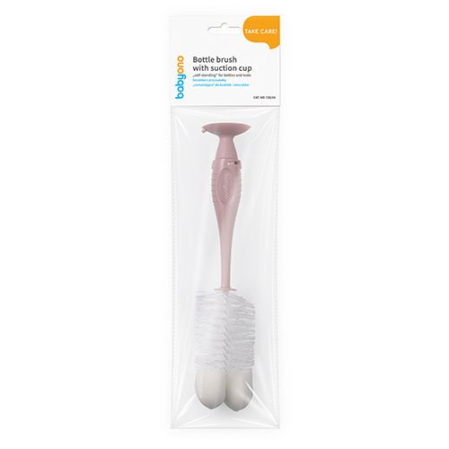 - Szczotka do butelek i smoczków samostojąca z przyssawką i chowaną mini szczoteczką.