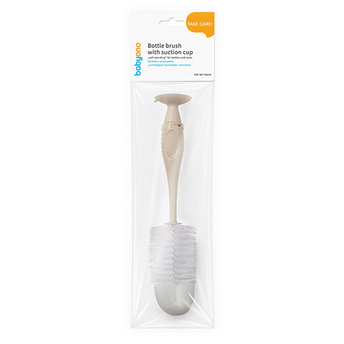 - Szczotka do butelek i smoczków samostojąca z przyssawką i chowaną mini szczoteczką.