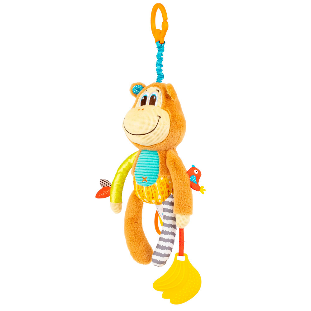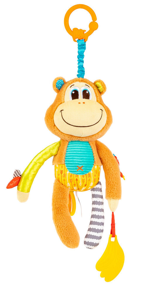 Zabawka wyposażona jest w praktyczną zawieszkę, dzięki której przymocujesz małpkę w dowolnym miejscu, aby wszędzie mogła towarzyszyć dzidziusiowi.