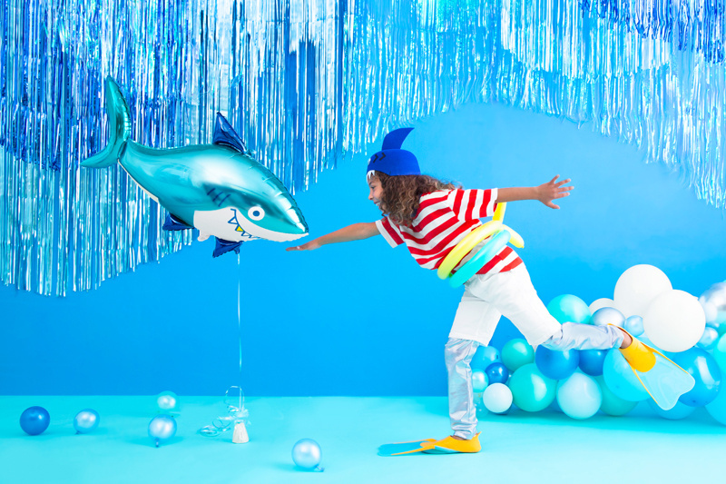 - Błyszczący balon foliowy Rekin, mix kolorów, wymiary przed napompowaniem ok. 102 x 62 cm (40 x 24''),wymiary po napompowaniu ok. 92 x 48 cm (36 x 19''). Do napompowania powietrzem i helem.