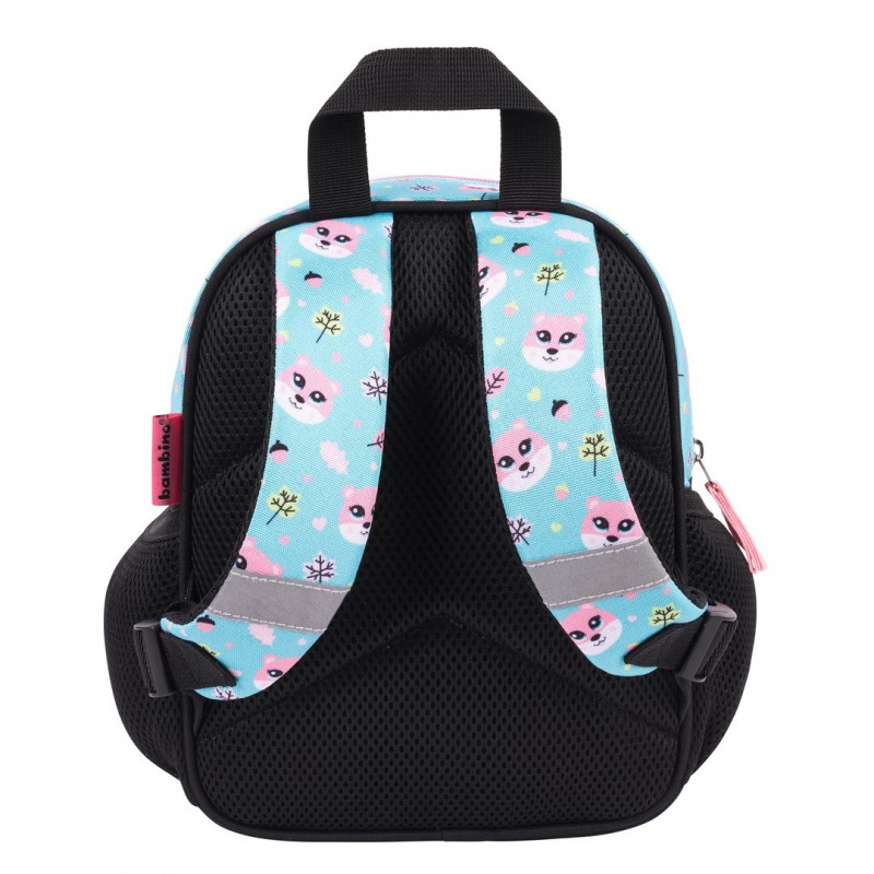 Plecak został wyposażony w elementy odblaskowe, które zwiększają widoczność dziecka na drodze.