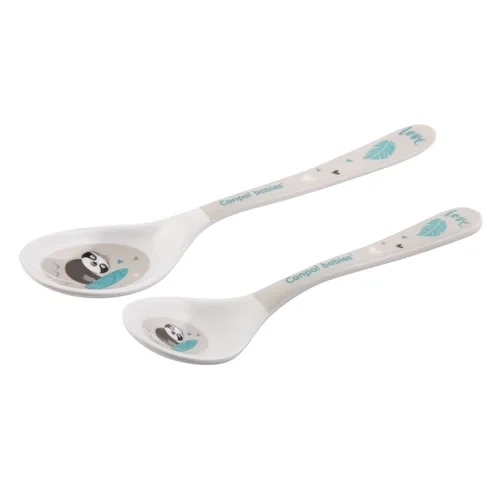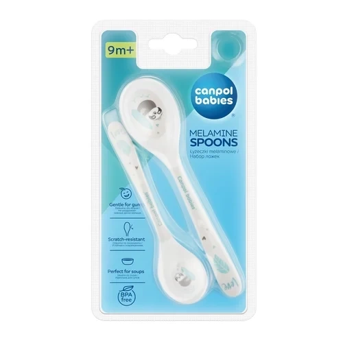 Łyżeczki wykonane został z melaminy, tworzywa odpornego na zarysowania. Posiadają zaokrąglony kształt, dzięki czemu nie podrażniają delikatnych dziąseł dziecka.