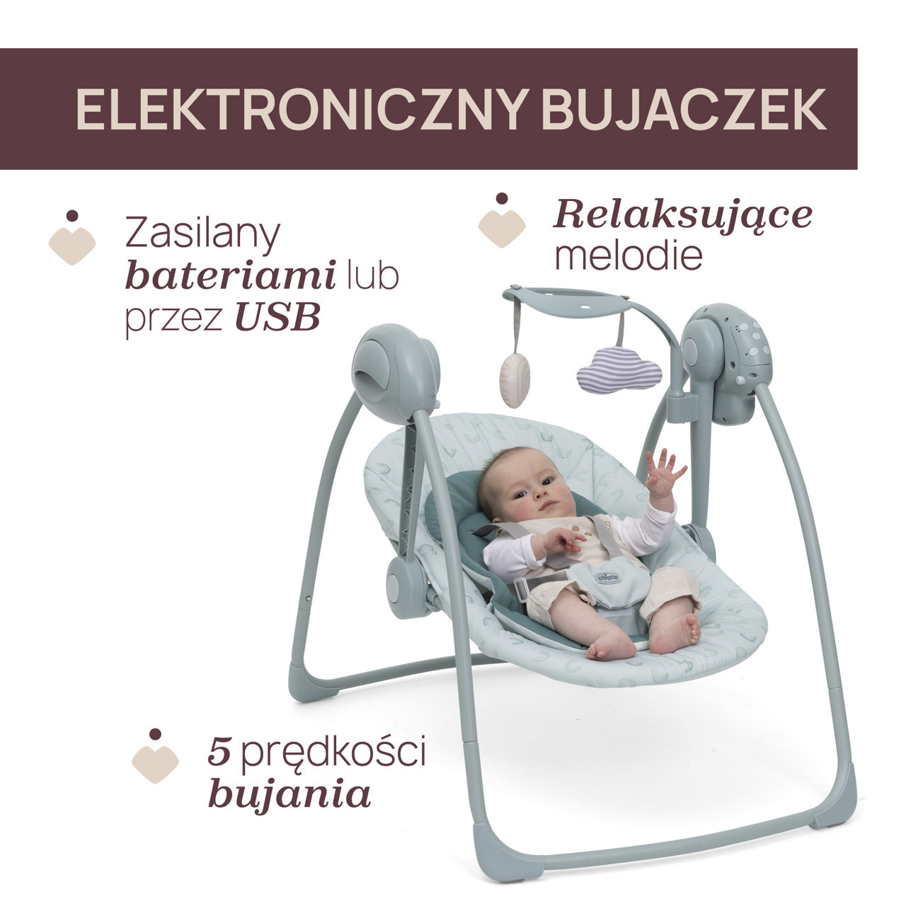 - 5 PRĘDKOŚCI BUJANIA: Oferuje szeroki zakres ruchów, od delikatnego kołysania po bardziej dynamiczne, dostosowując się do nastroju i preferencji dziecka.