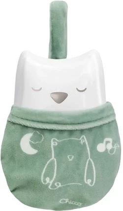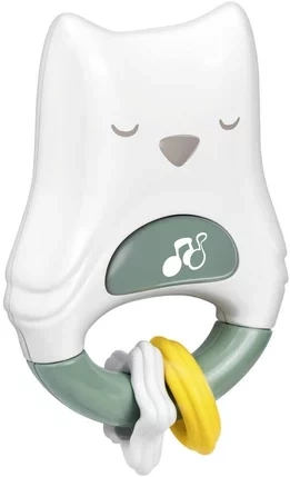 Grzechotka w kształcie sowy staje się lampką nocną, która towarzyszy dziecku podczas nocnego snu. Można go włożyć do śpiwora z miękkiej tkaniny, a dzięki paskowi można go przymocować do drewnianych łóżeczek. Po naciśnięciu środkowego przycisku zaczyna odtwarzać relaksujące melodie wraz z delikatnymi światłami.