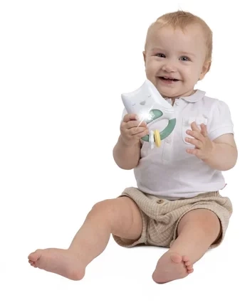 - Pierwsza innowacyjna grzechotka elektroniczna 2w1 z dwoma trybami: bawi maluszka w ciągu dnia i zamienia się w lampkę nocną do odpoczynku dziecka.