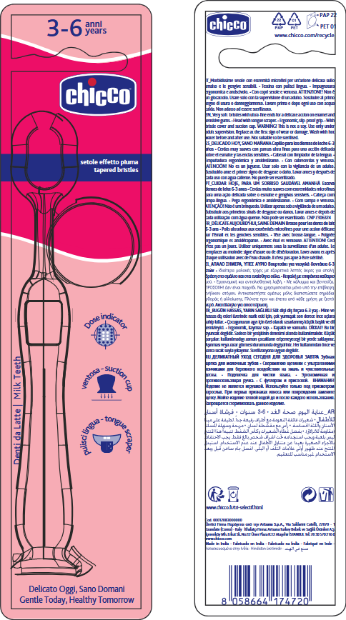 - Zapewnij swojemu dziecku doskonałą pielęgnację jamy ustnej od najmłodszych lat dzięki nowej szczoteczce do zębów Chicco, stworzonej specjalnie dla dzieci w wieku od 3 do 6 lat.