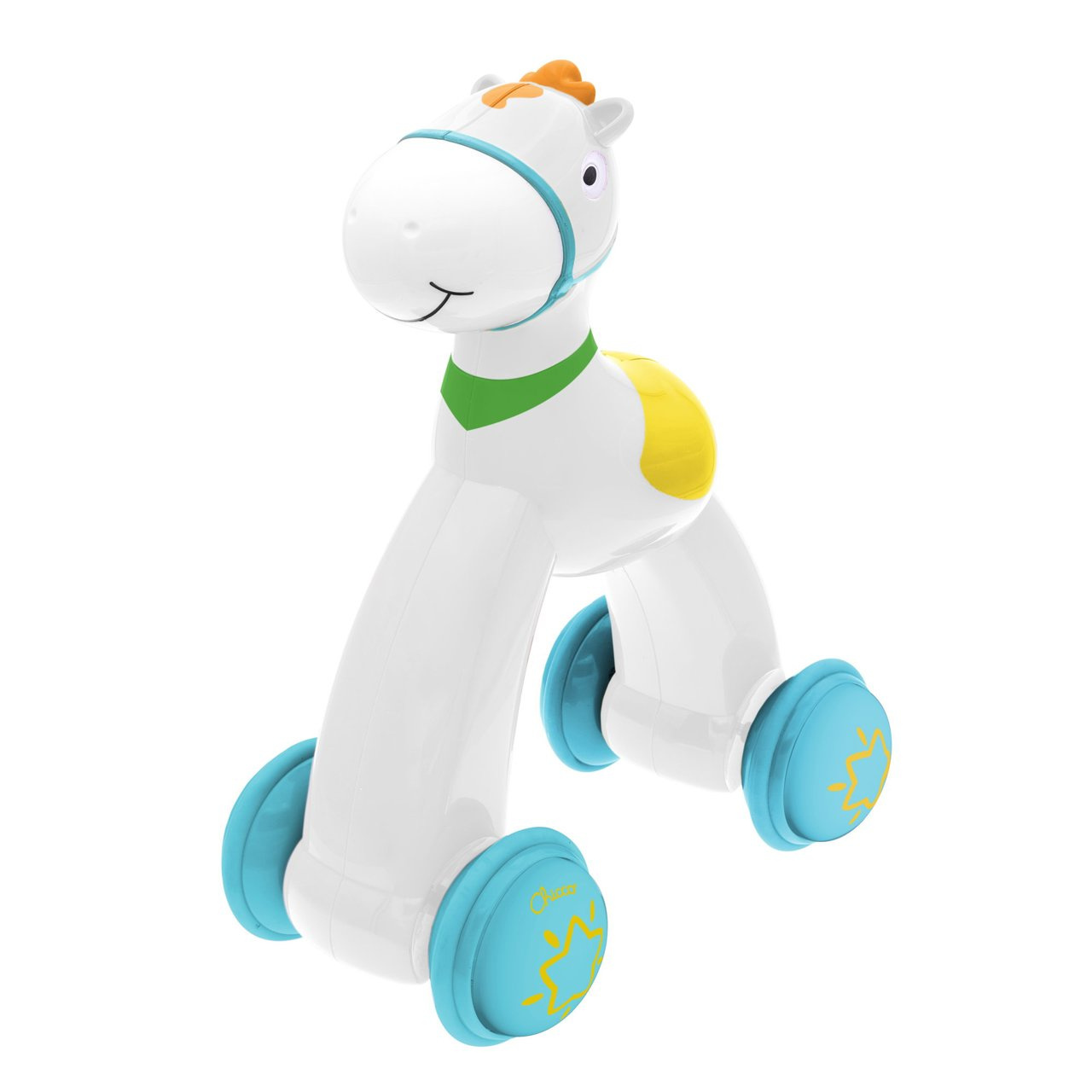 Ta interesująca funkcja na pewno zachwyci każde dziecko. Koła konika zawierają grzechoczące koraliki, które wydają dźwięki podczas ruchu, co nie tylko dodaje atrakcyjności, ale również stymuluje zmysł słuchu dziecka!