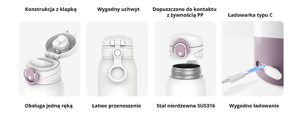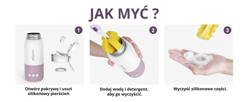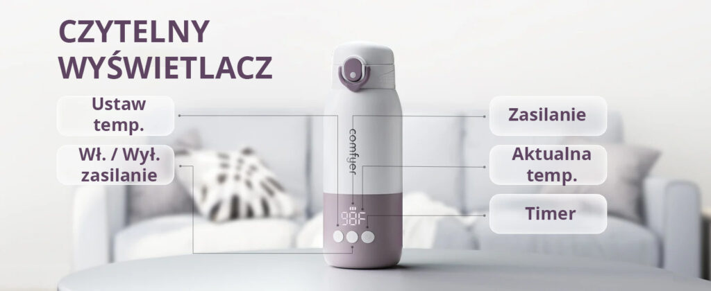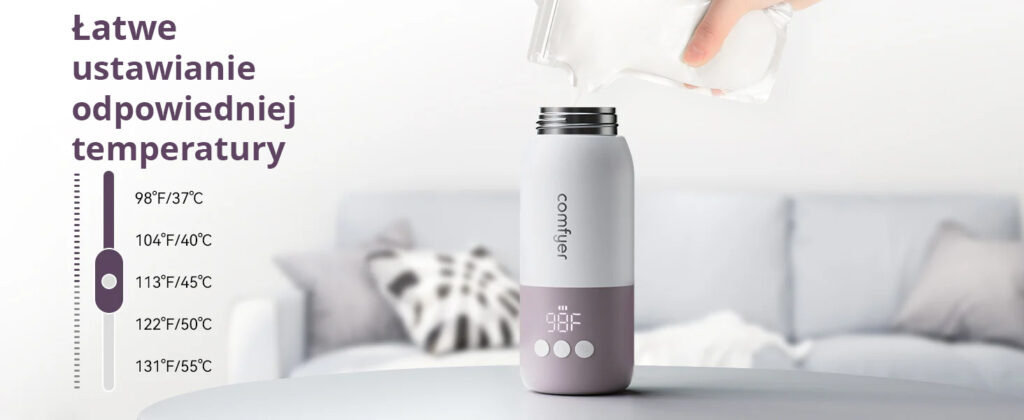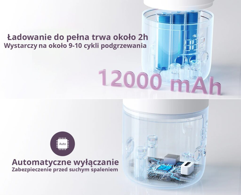 - Podgrzewacz Comfyer Baby BW01 pozwoli Ci podgrzać wodę aż do około 9 razy na jednym ładowaniu.