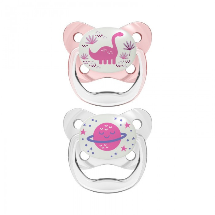 Dr Browns Smoczek ortodontyczny Prevent 6-18 m 2 pak świecący w ciemności, różowy