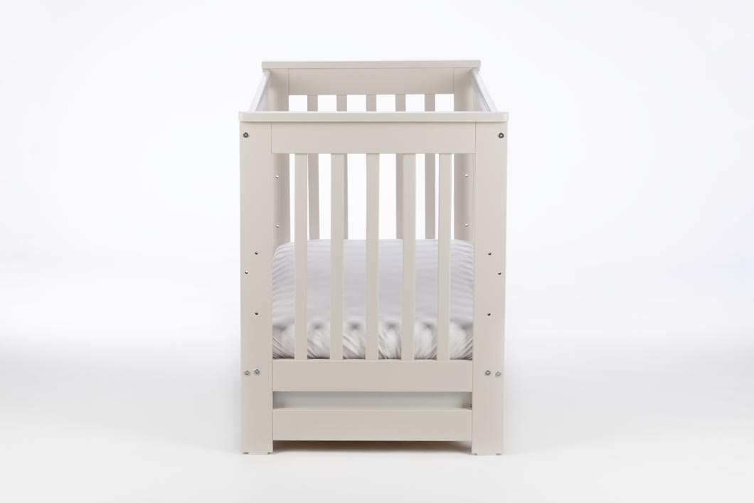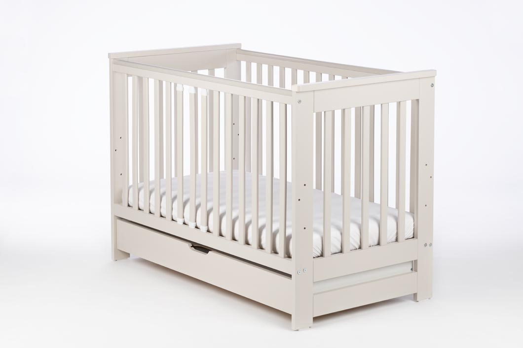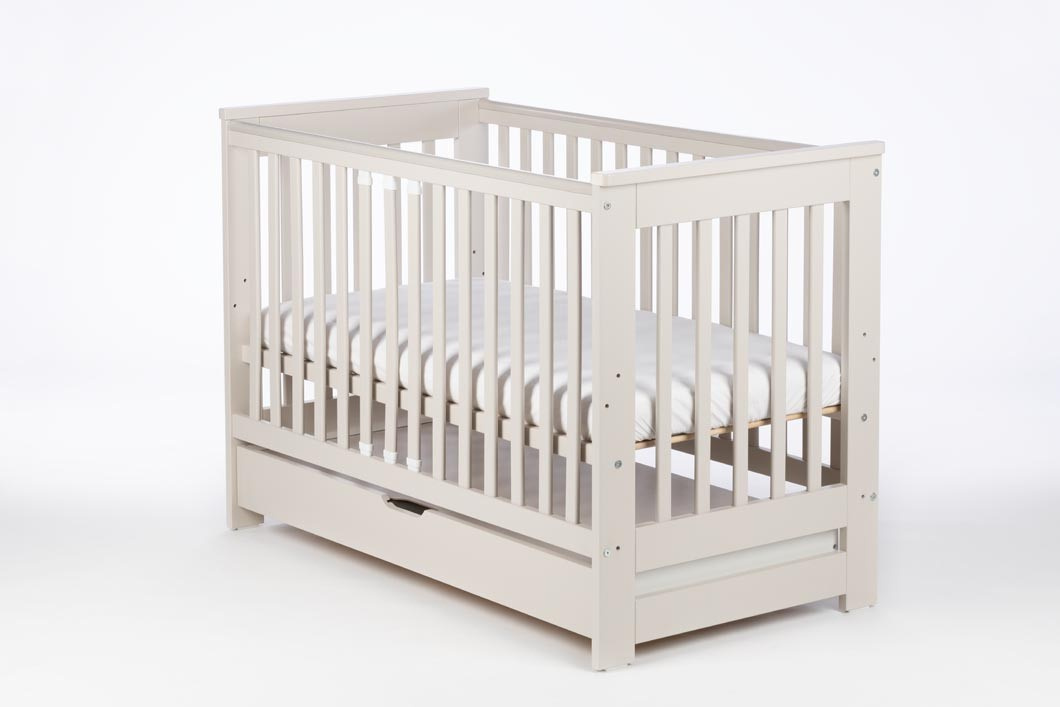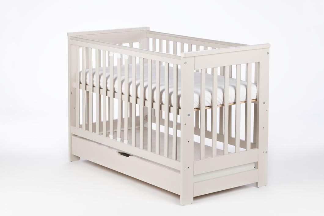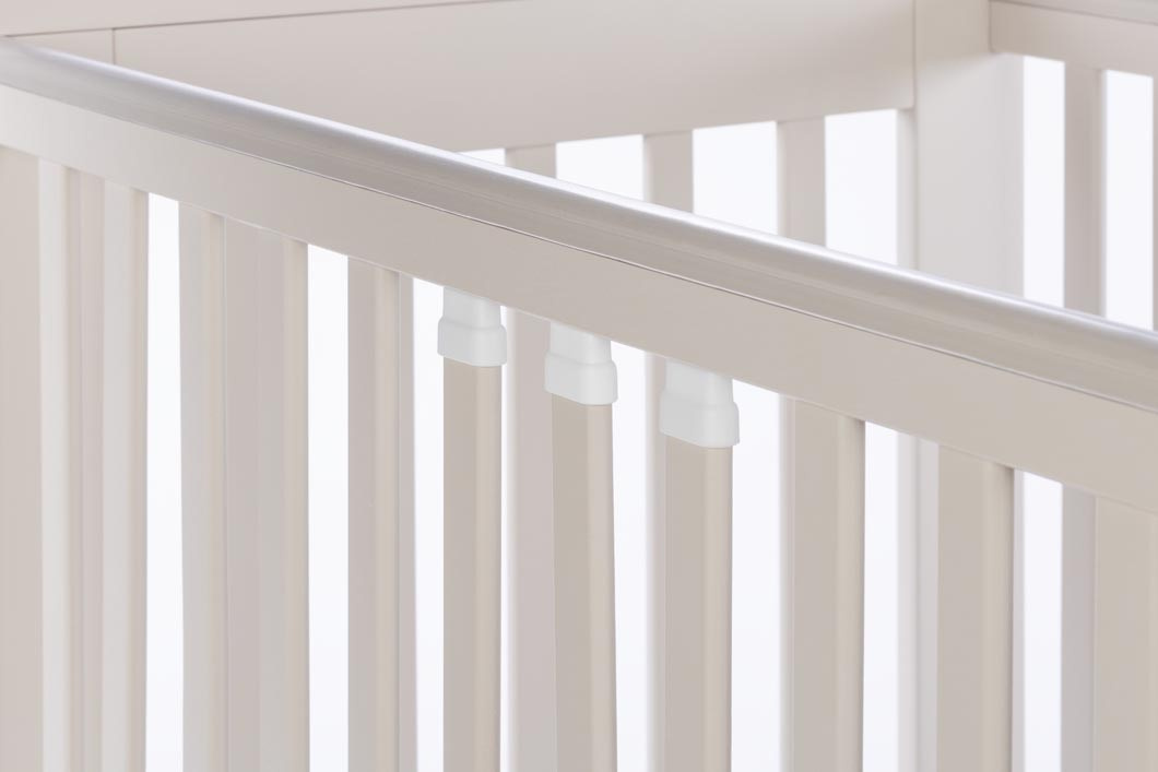 Łóżeczko posiada 3 poziomy regulacji dna, co pozwala na dostosowanie wysokości do wieku i potrzeb dziecka. Osłonki na długich bokach chronią łóżeczko przed mechanicznymi uszkodzeniami.