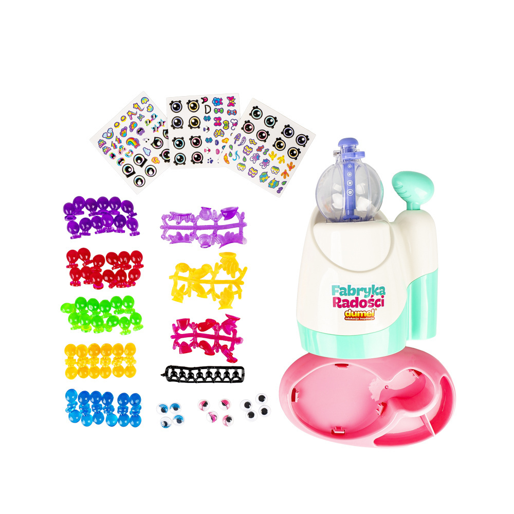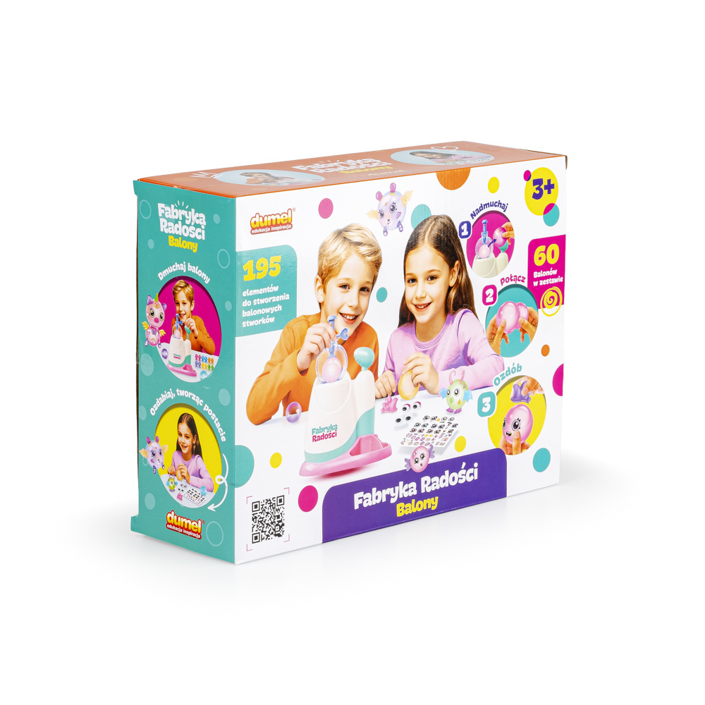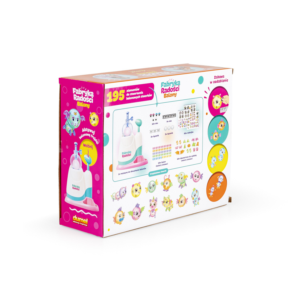 W zestawie znajdziesz wszystko, czego potrzeba, aby stworzyć kolorowe, balonowe stworki. Przy pomocy specjalnej maszynki nadmuchaj baloniki do zaznaczonego na podziałce poziomu, wyjmij je i połącz ze sobą w zabawne stworki-potworki.