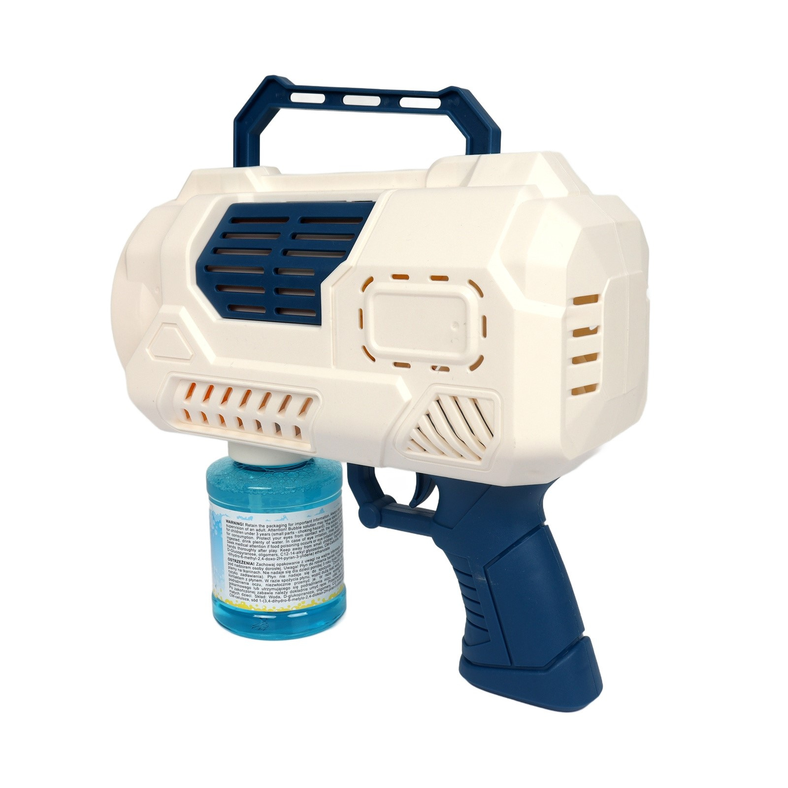 - Gotowi na huragan bąbelkowej radości? Wyrzutnia wyczaruje nieprzerwany strumień baniek, a praktyczny uchwyt, w który została wyposażona, umożliwi jej łatwe przenoszenie z miejsca na miejsce.