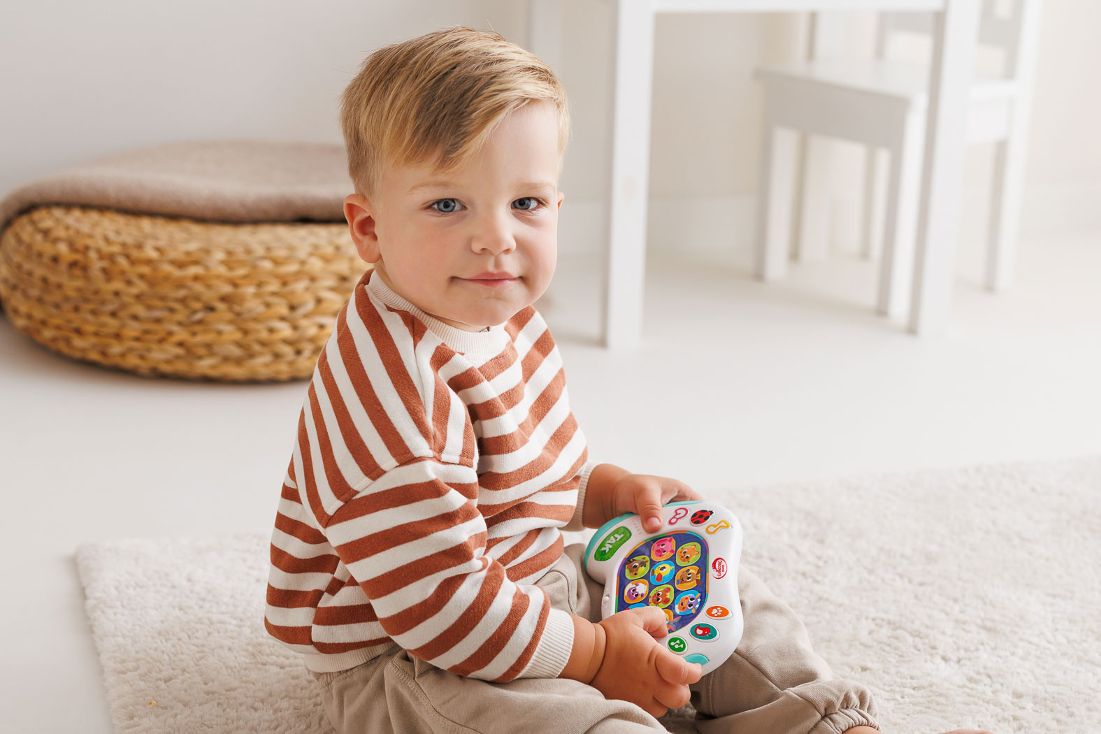 Znajdziemy tu guziczki z podobiznami zwierzątek oraz przyciski aktywujące tryb zabawy: ciekawostki o zwierzątkach, dźwiękowe niespodzianki, takie jak zwierzęce odgłosy, dźwiękowe miksy czy wesołe melodie, a także quiz biedronki, działający na zasadzie gry „prawda czy fałsz”.