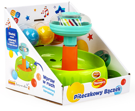 - po wciśnięciu tłoka piłeczki wirują przy błyskaniu światełek i dźwiękach melodii