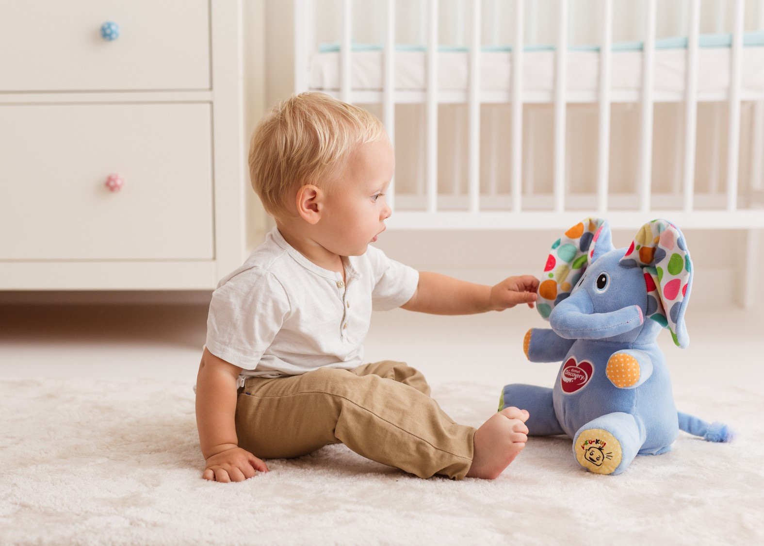 - Słonik potrafi śpiewać, a jego wesoła piosenka bez wątpienia wprawi malucha w dobry nastrój.