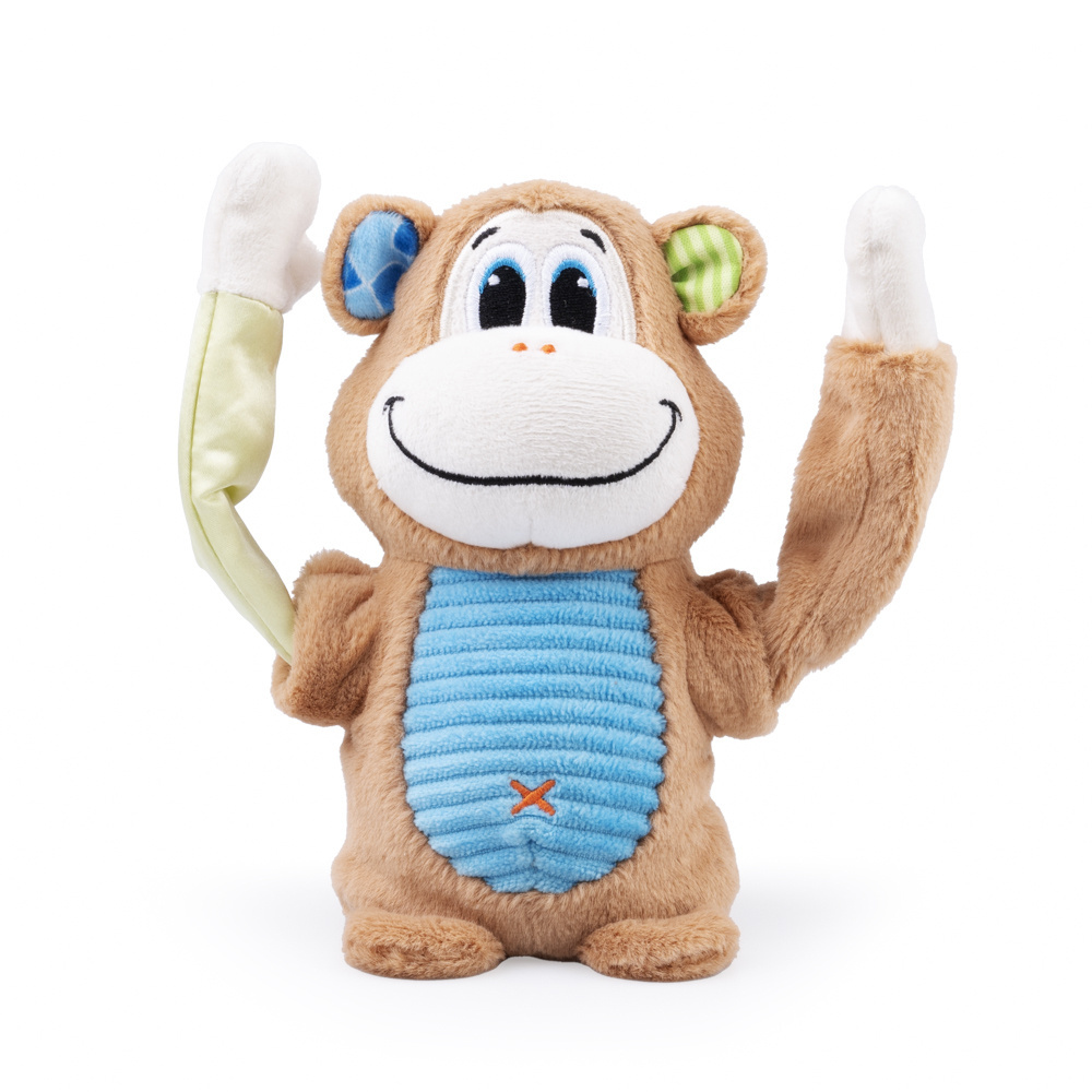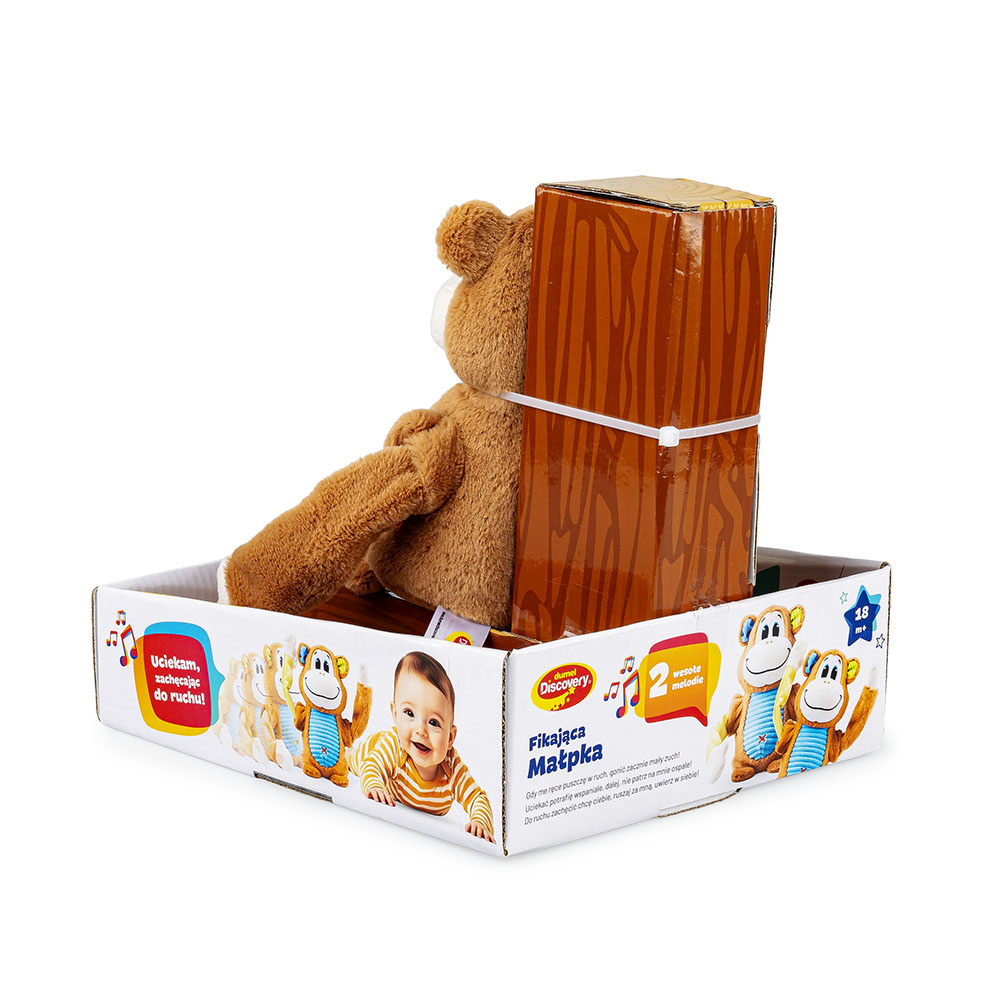 Zabawny małpiszon porusza się do przodu na swych obrotowych ramionach, czy uda ci się go złapać? Małpka przemieszcza się zwinnie, zachęcając najmłodszych do ruchu. Zwierzak został wykonany z materiałów o zróżnicowanych fakturach, a jego poruszaniu się towarzyszą dwie wesołe melodie, które uprzyjemnią zabawę.