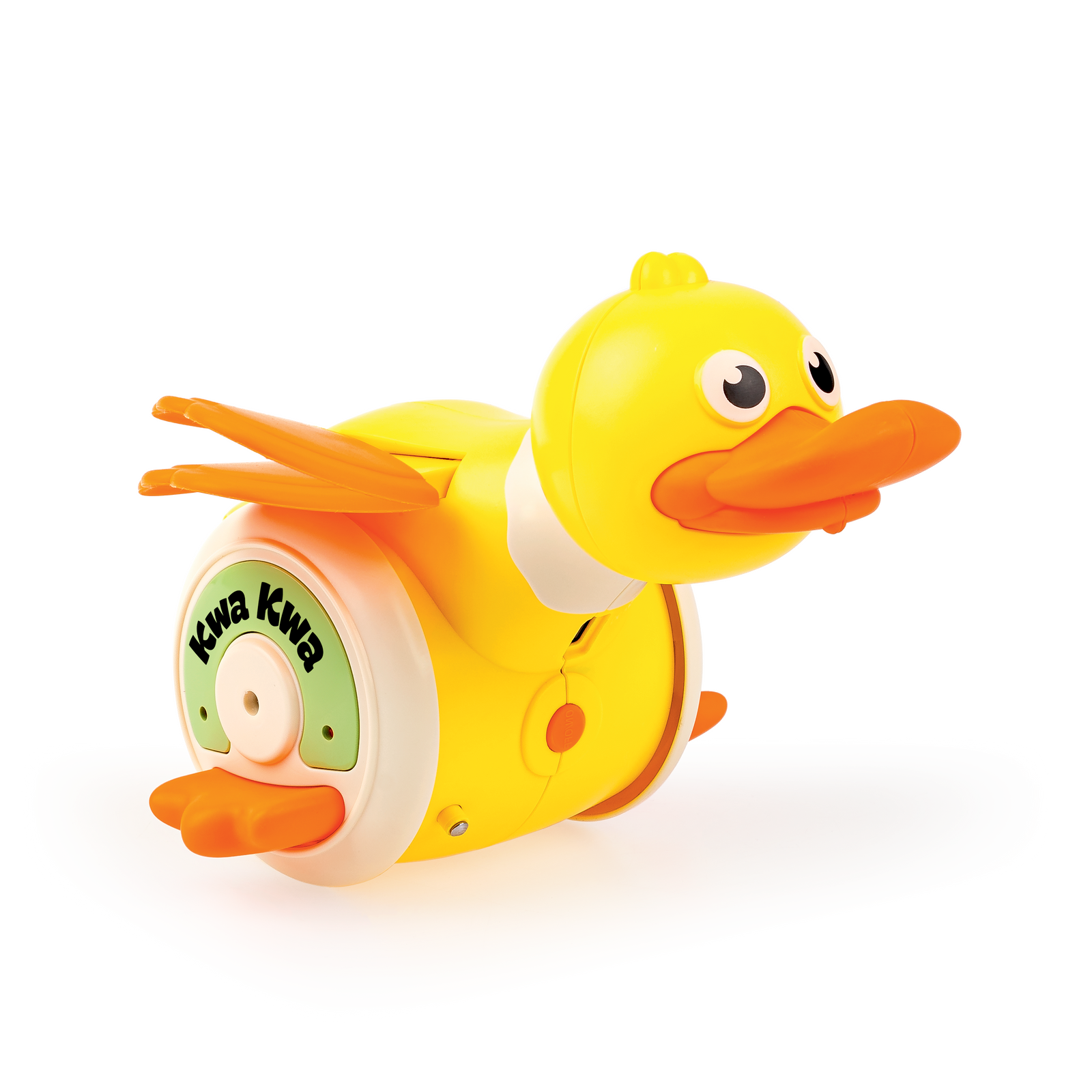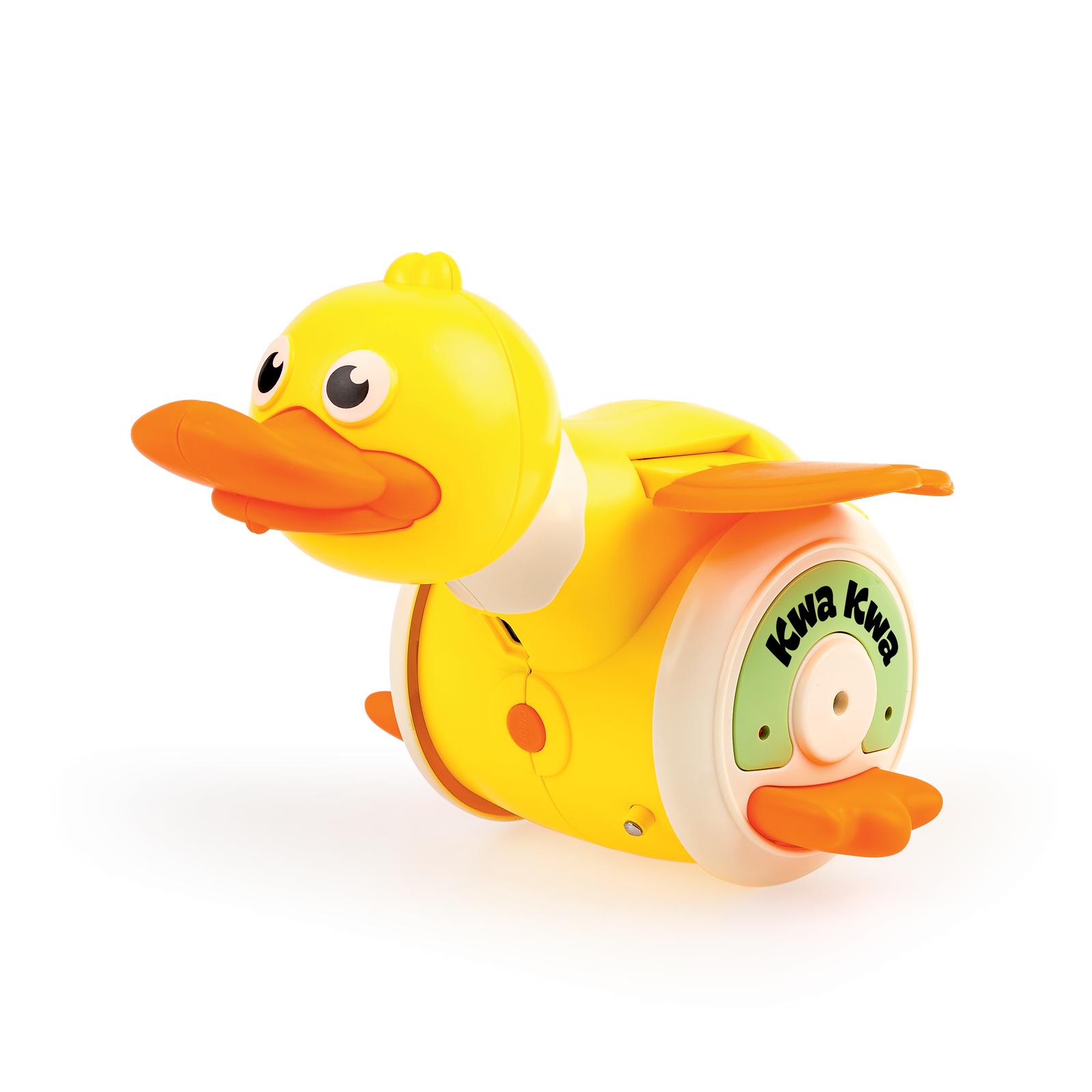 Kaczucha jeździ trzepocząc skrzydełkami, a czynności tej towarzyszy świecenie się kółeczek. Zabawka śpiewa po polsku, ale potrafi także poruszać się bez dźwięku.